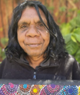 Helen Rubuntja (b. 1965), an Alyawarre artist from Utopia, paints Bush Seeds and Water Dreaming using soft dotting and seasonal colour variation. Her aerial views show plants and flowing water in different stages. A senior custodian of women’s ceremonies, her minimalist and lyrical works express deep ties to Country and are held in respected collections worldwide.